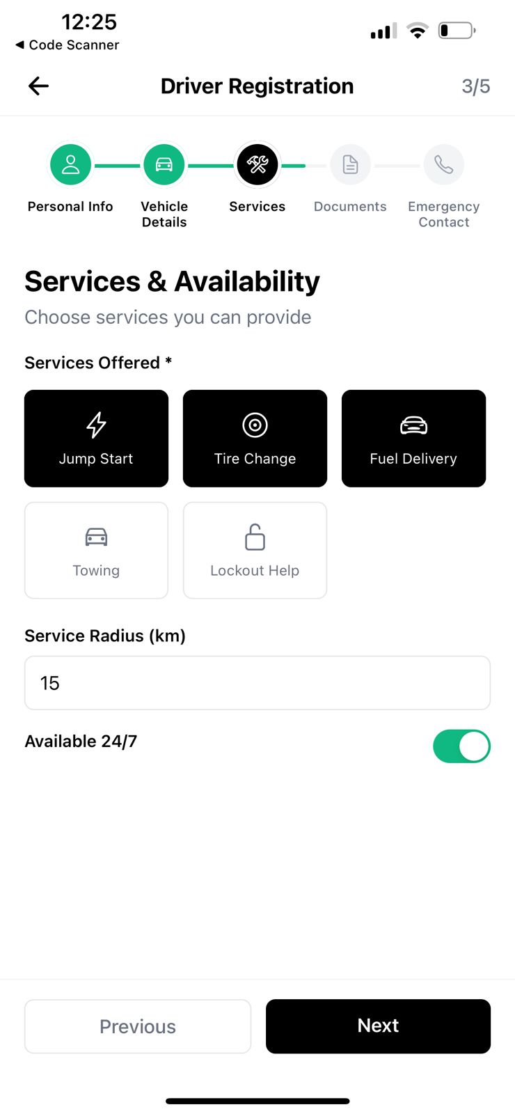 - ✓Multiple service types (tow, tire, battery, fuel)