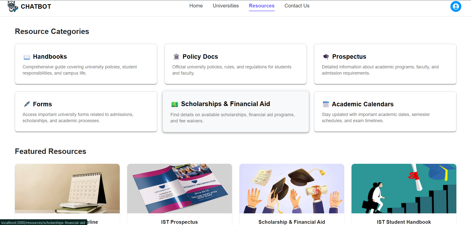 University Portal with Chatbot