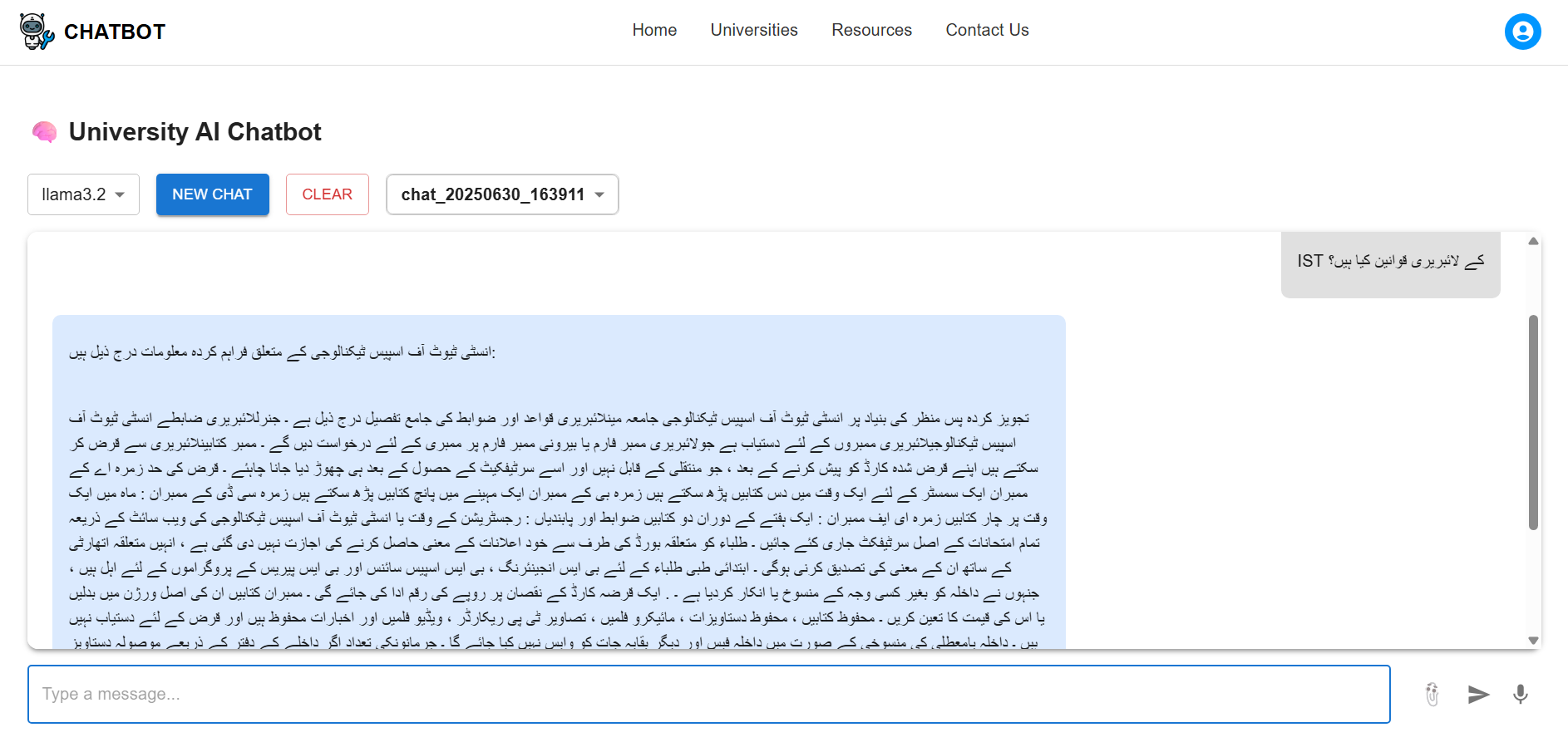 Students needed an intelligent portal that could assist them in both Urdu and English, providing quick answers to academic and administrative queries without waiting for human support.