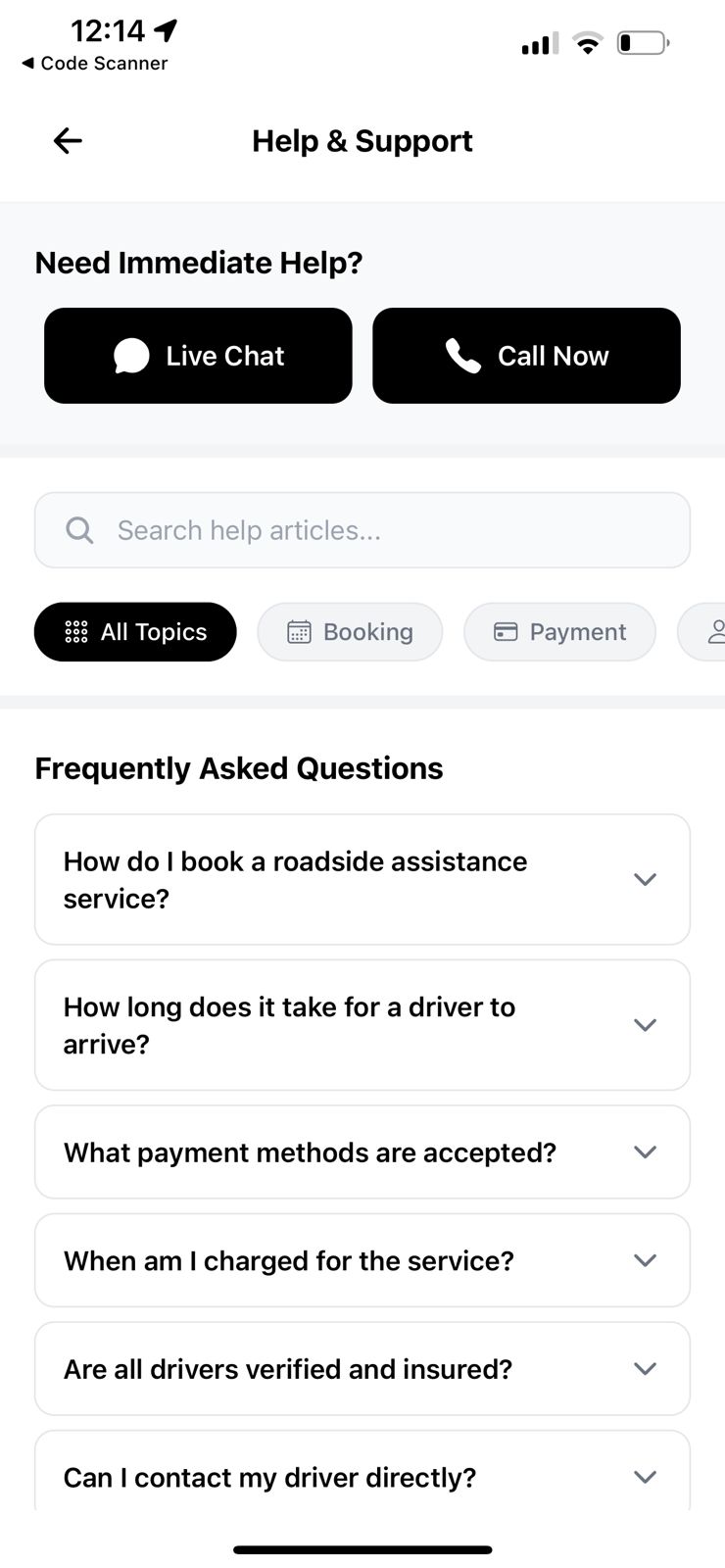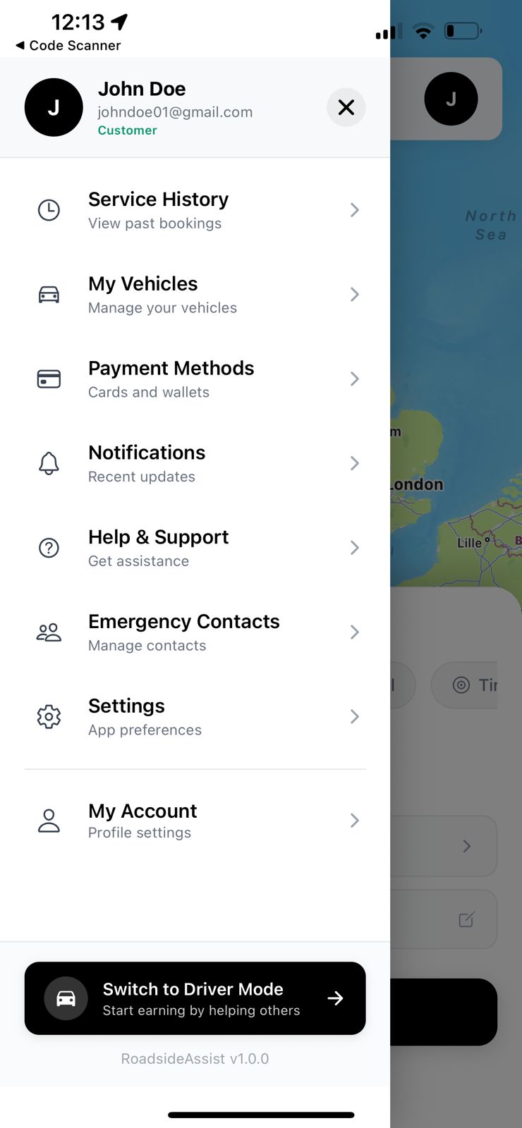 Stranded drivers needed a quick and reliable way to find nearby roadside assistance providers, track them in real-time, and pay securely through the app.