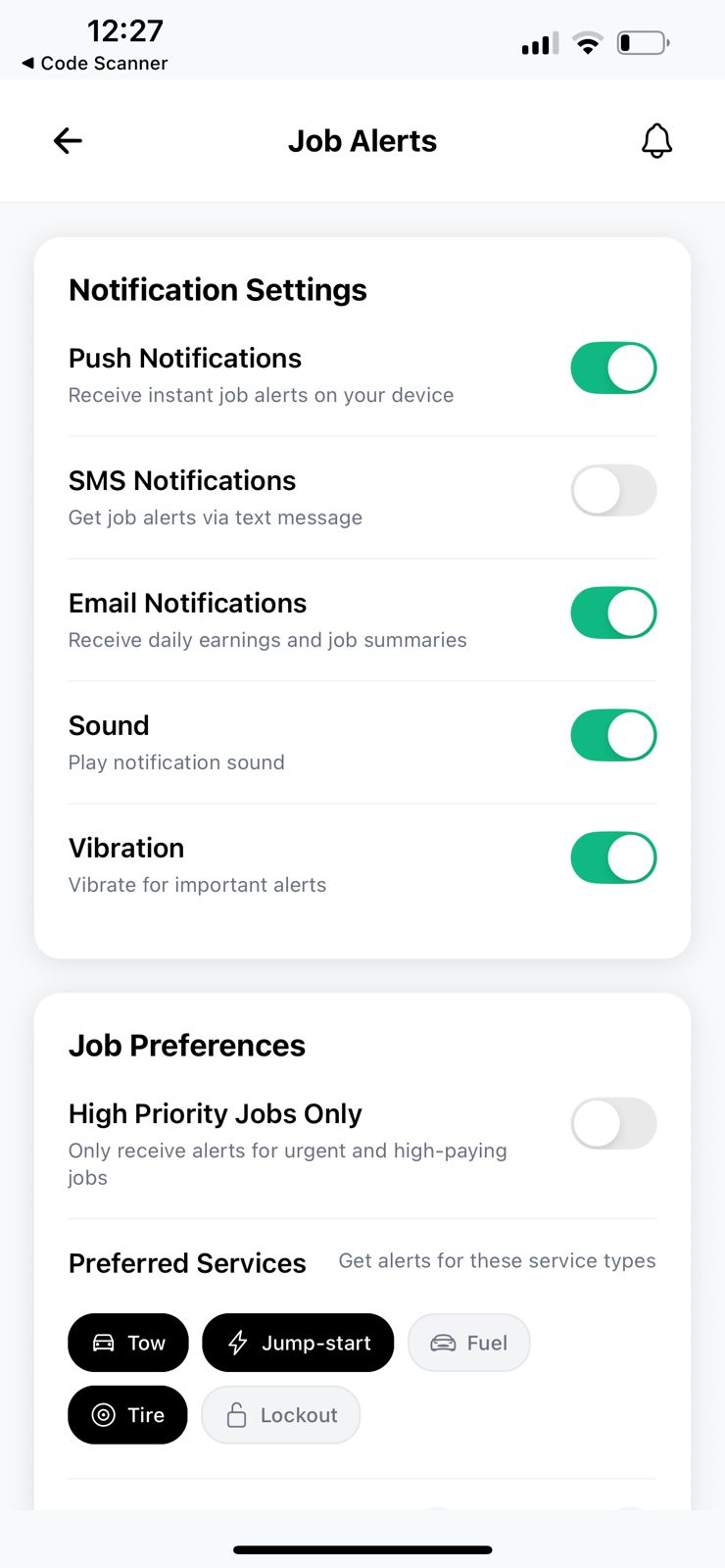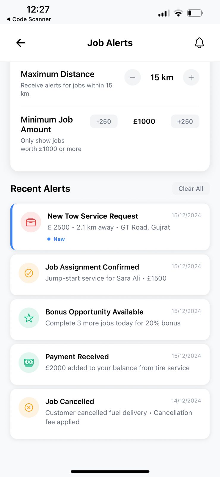 - ✓Multiple service types (tow, tire, battery, fuel)